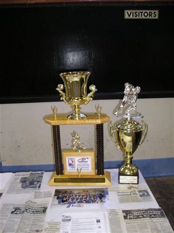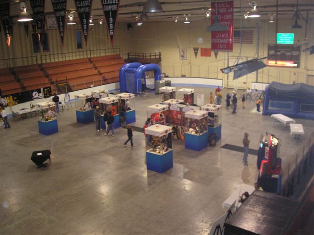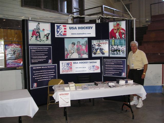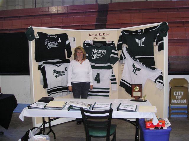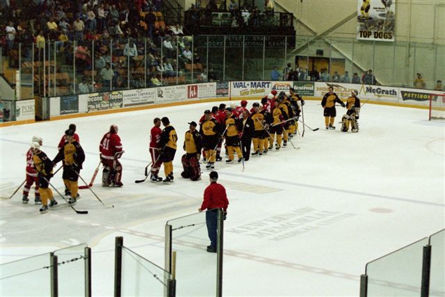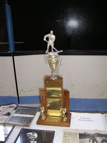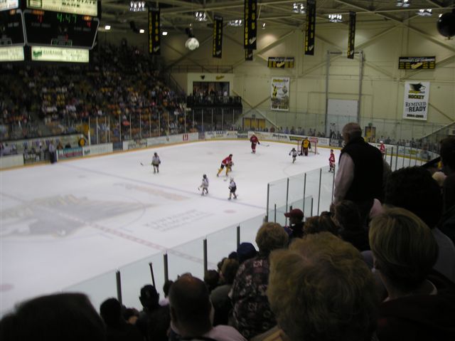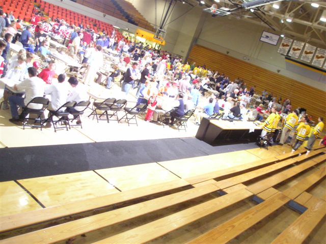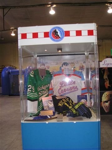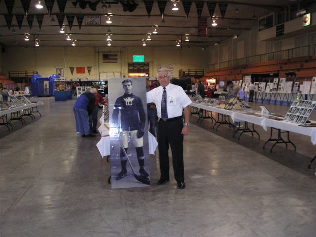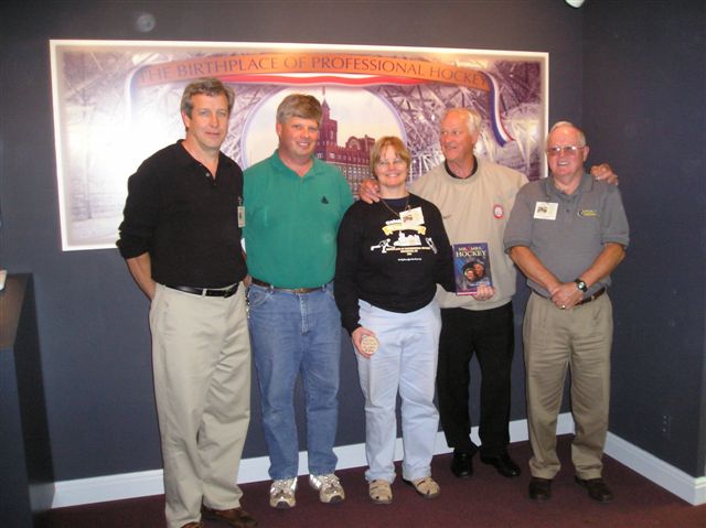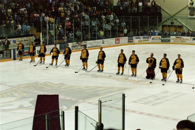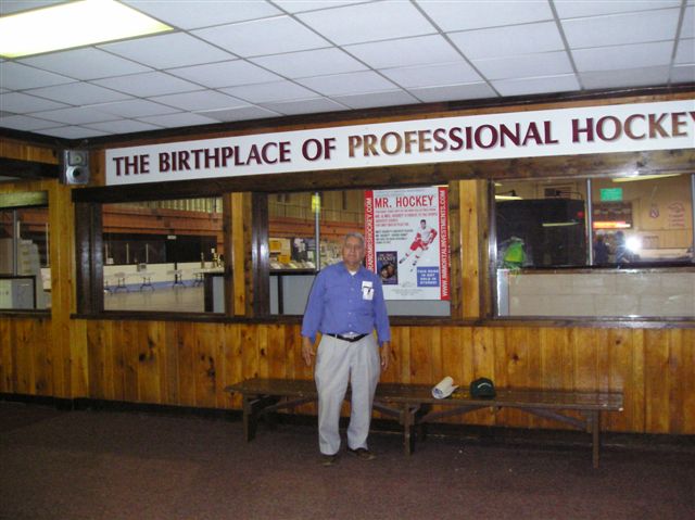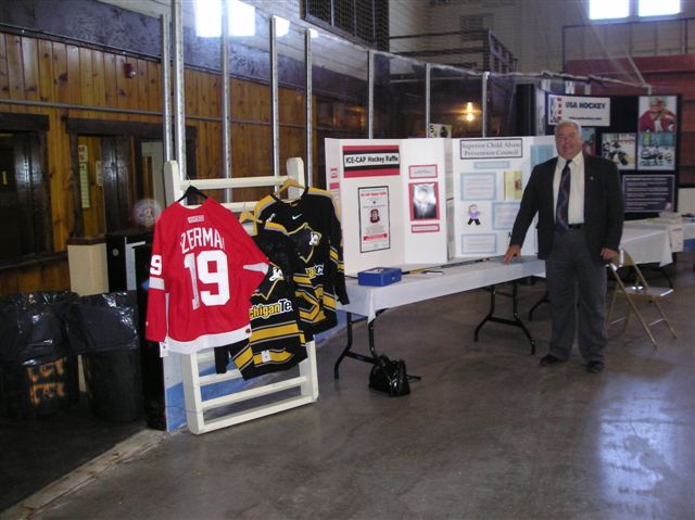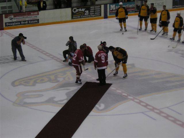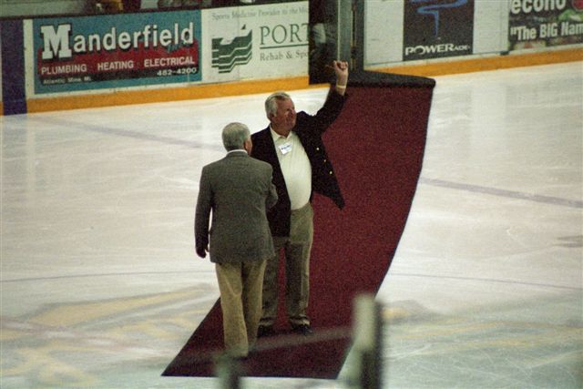 Local player, Paul Coppo, recently inducted into the U.S. Hockey Hall of Fame, is honored by the home crowd. |