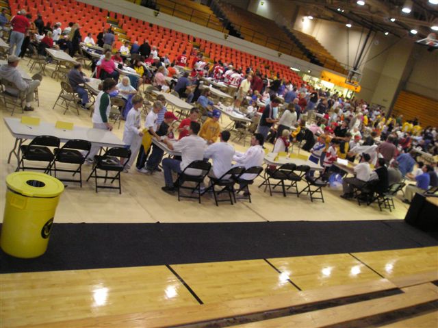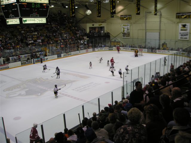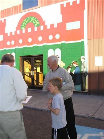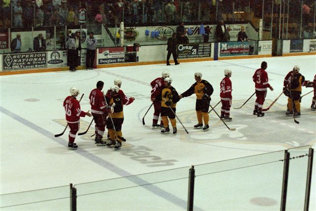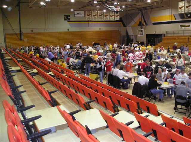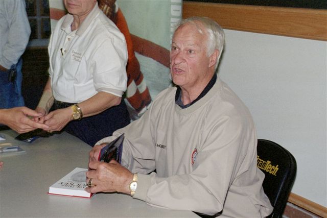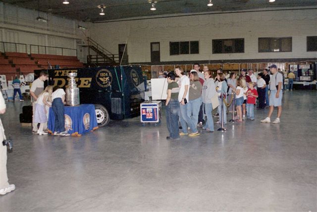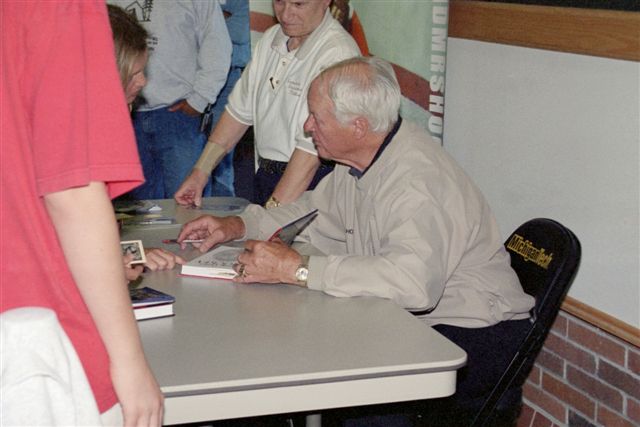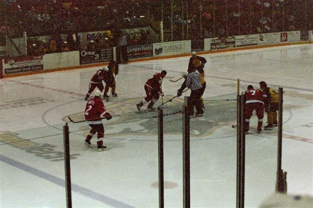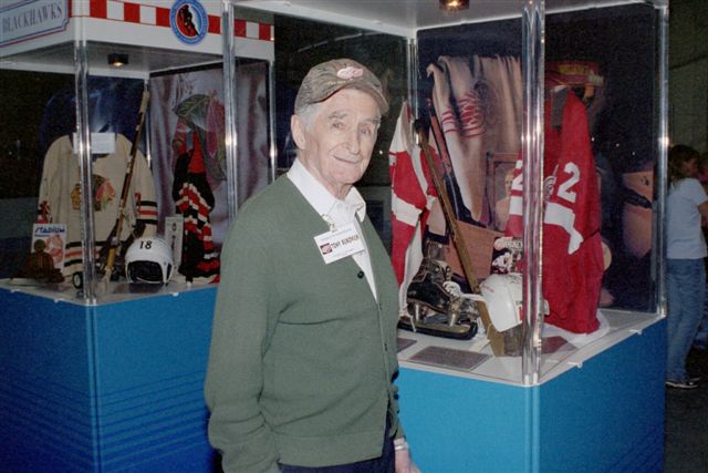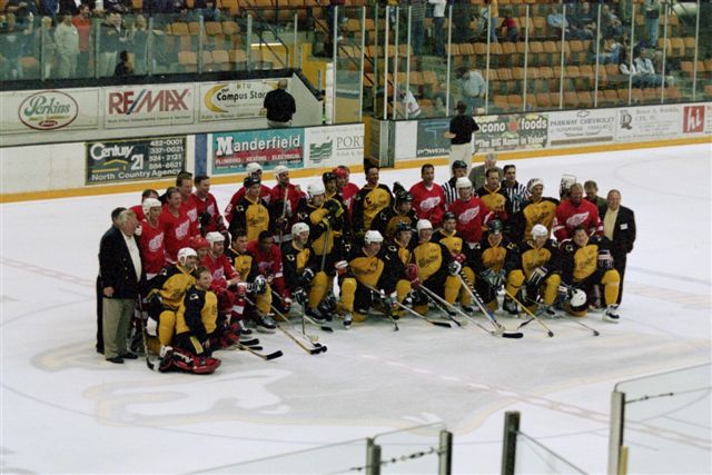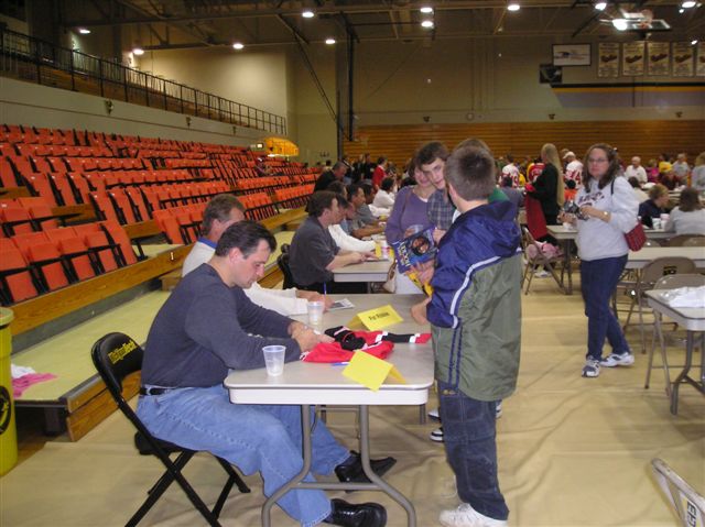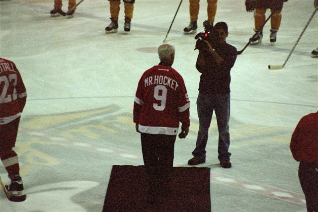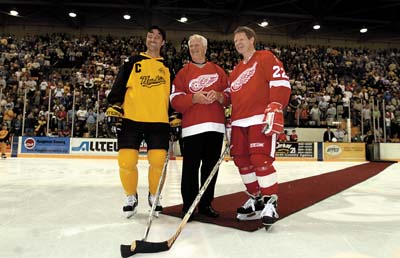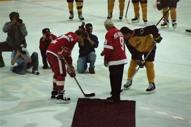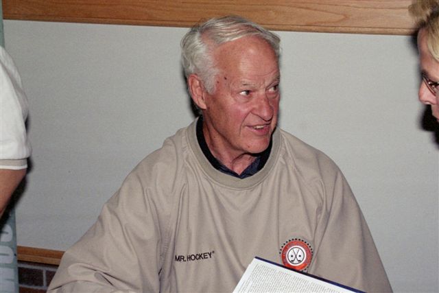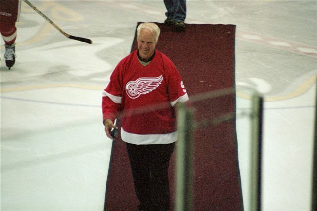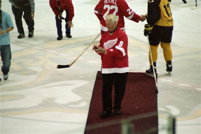 | Gordie Howe signs autographs and drops the puck at the Alumni game |