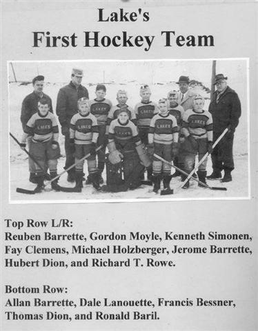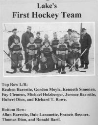 | 1956-57 "First Lake Linden Team" ![]() Top row Lt to Rt: Reuben Barrette, Gordon Moyle, Kenneth Simonen, Fay Clemens, Michael Holzberger, Jerome Barrette, Hubert Dion, Richard T. Rowe. Front Row: Allan Barrette, Dale Lanouette, Francis Bessner, Thomas Dion, Ronald Baril. Photo courtesy Houghton County Historical Museum |