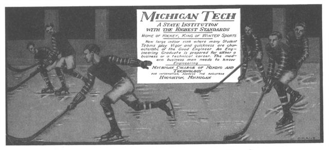 | Some of the first coaches of the early Michigan Tech teams were Leon Harvey, Elmer Sicotte, Carlos (Cub) Haug, and Ubald J. (Bert) Noblet. Coach Noblet was hired in 1929 by the college to direct the athletic department and coach their teams. Coach Noblet arranged for the hockey team to go on a tour to play against prominent Ivy League schools. Tech only won one game, but made the East aware of its hockey program, the program moved from competing against local teams to become an intercollegiate sport. |