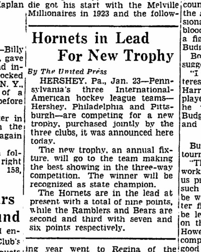 1940 Pennsylvania Ice Hockey Championship Trophy