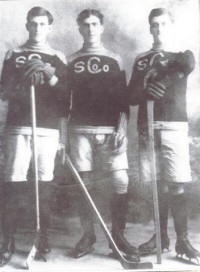 Soo Canada Players: abt 1905-08![]() McNamara Brothers: Lt to Rt: Howard, Harold, George McNamara Photo courtesy of Harold McNamara (grandson of Harold) via Glen Goodhand. All of the brothers were over 200 pounds, making them mostly the biggest in the league. |