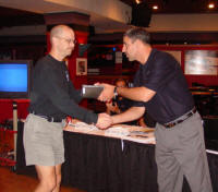 Kevin Langseth accepts an award for his 11 years in CCHA. |